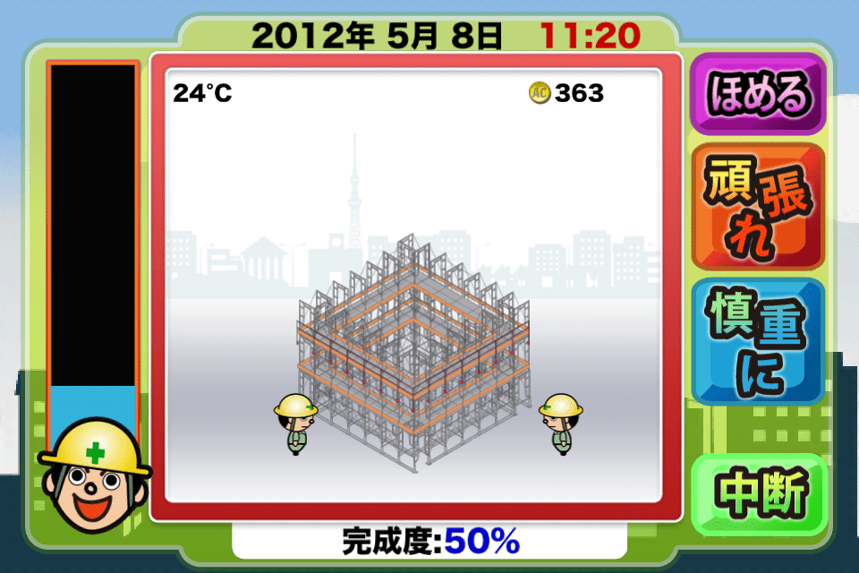 これまでに存在しなかった「仮設業界をテーマにしたゲーム」という新しい切り口により、教育・広報・エンタメの三つの役割を融合させたアプリとして開発を進めました。
